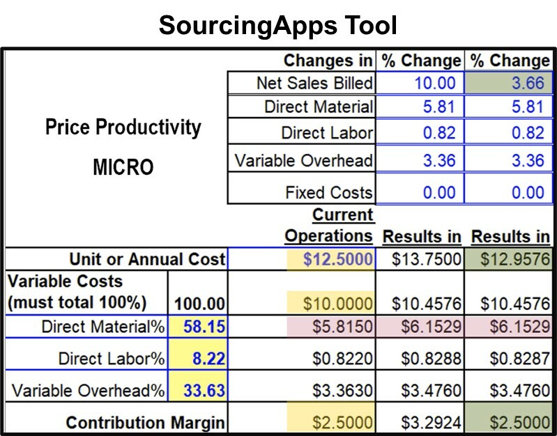 In Part I, Price Productivity Macro Analysis showed that an inflationary driven price increase potentially could contain a Windfall Profit for the supplier. The example showed the proposed price increase was reduced by 20%. Using the same example, this post digs deeper and demonstrates how a Price Productivity Micro Analysis produces 63.4% reduction in a proposed price increase. Part I showed how a 10% price increase was countered with an 8% increase. This post shows how the same 10% price increase is countered with a much lower 3.66% increase.